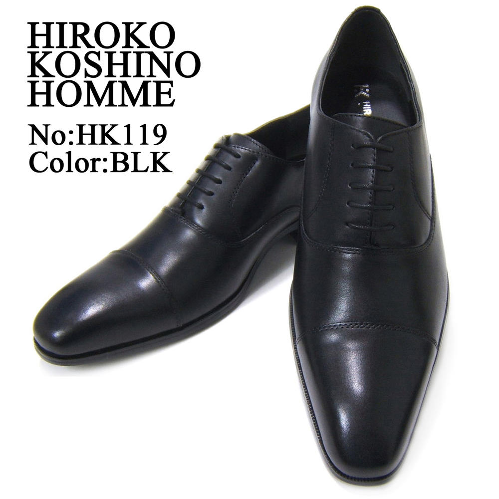 愛され続ける伝統のストレートチップ!HIROKO KOSHINO/ヒロコ コシノ ビジネス HK119 紳士靴 ブラック ストレートチップ ロングノーズ 内羽根 ビジネス 送料無料 ポイント10倍 フレッシャーズ